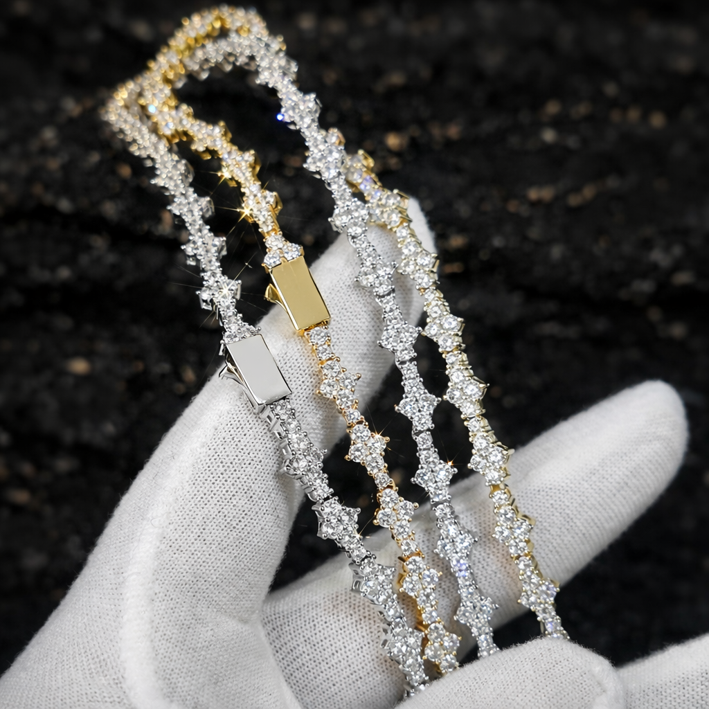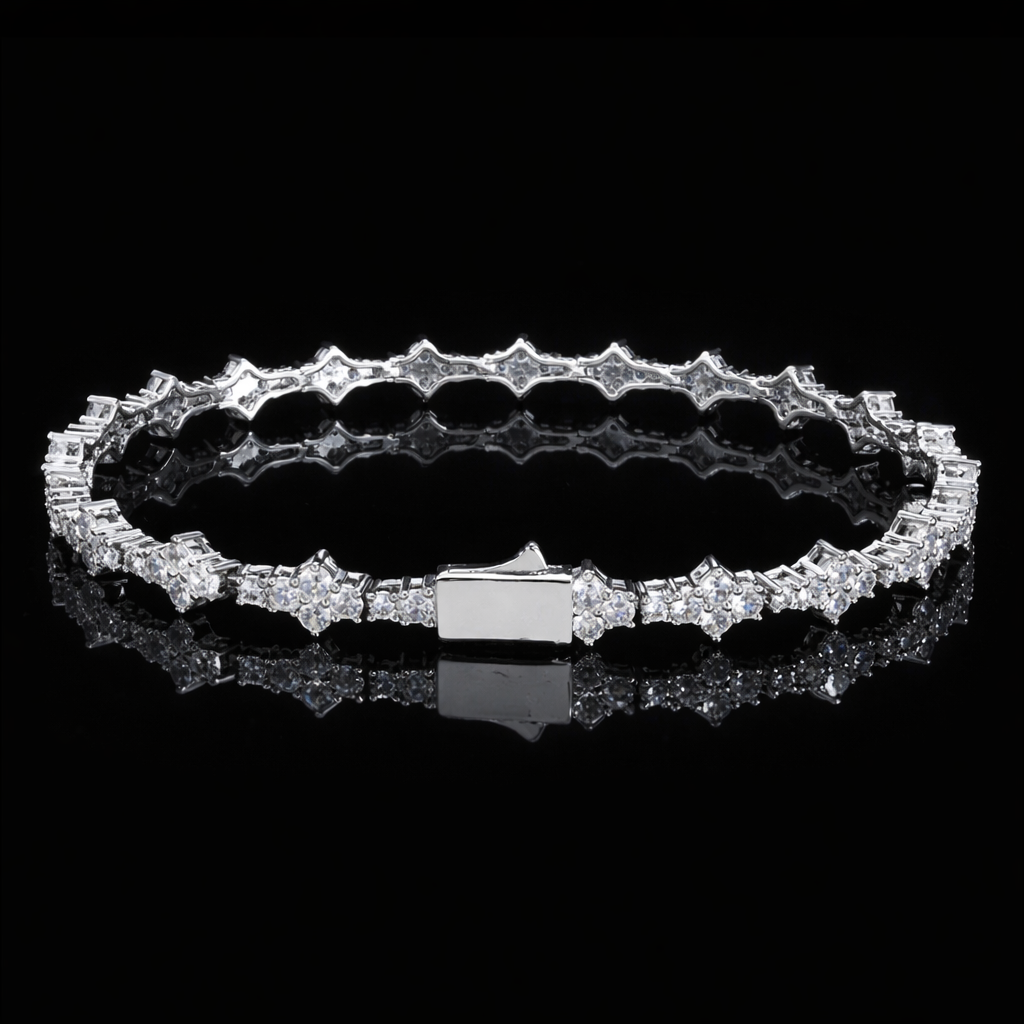 The Crøss Bracelet is a refined take on a classic symbol. Featuring hand set stones in a clean tennis silhouette, it is designed to balance subtle detail with everyday wearability.